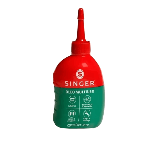 O Óleo lubrificante Singer é um composto finíssimo de óleos selecionados, que garante maior ação penetrante, lubrificação e conservação mais duradouras. Seu uso frequente evita desgastes em todos os aparelhos domésticos, bicicletas, máquinas de costura, ciclomotores, automóveis, trincos, dobradiças, engrenagens, entre outros.